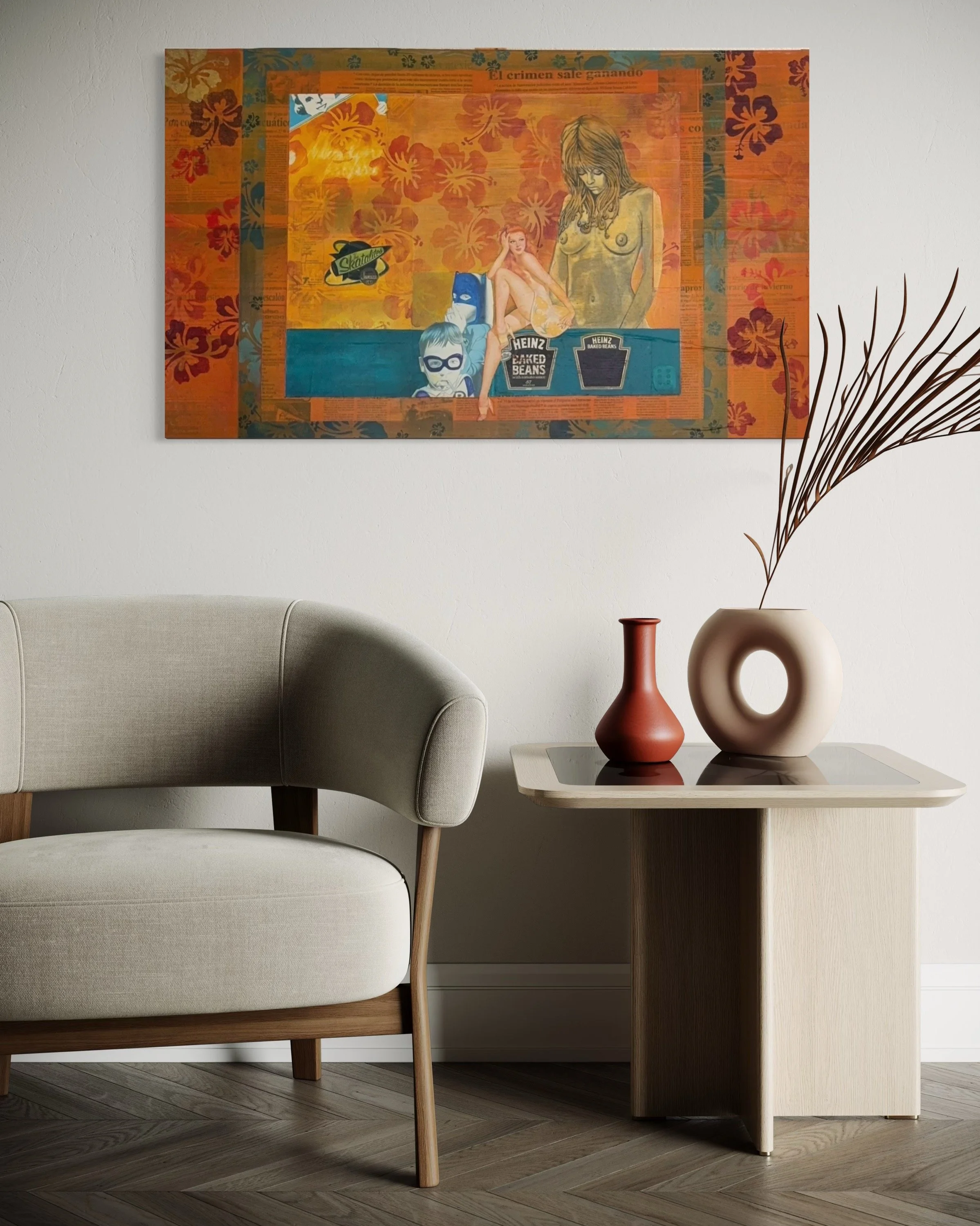 En mis obras me gusta representar a la mujer en sus distintas facetas, explorando su fuerza, su misterio y su sensibilidad. Tengo una inclinación especial por las imágenes, ilustraciones y fotografías de las décadas de los 50, 60 y 70, un imaginario visual que me inspira y que incorporo con frecuencia en mis creaciones.